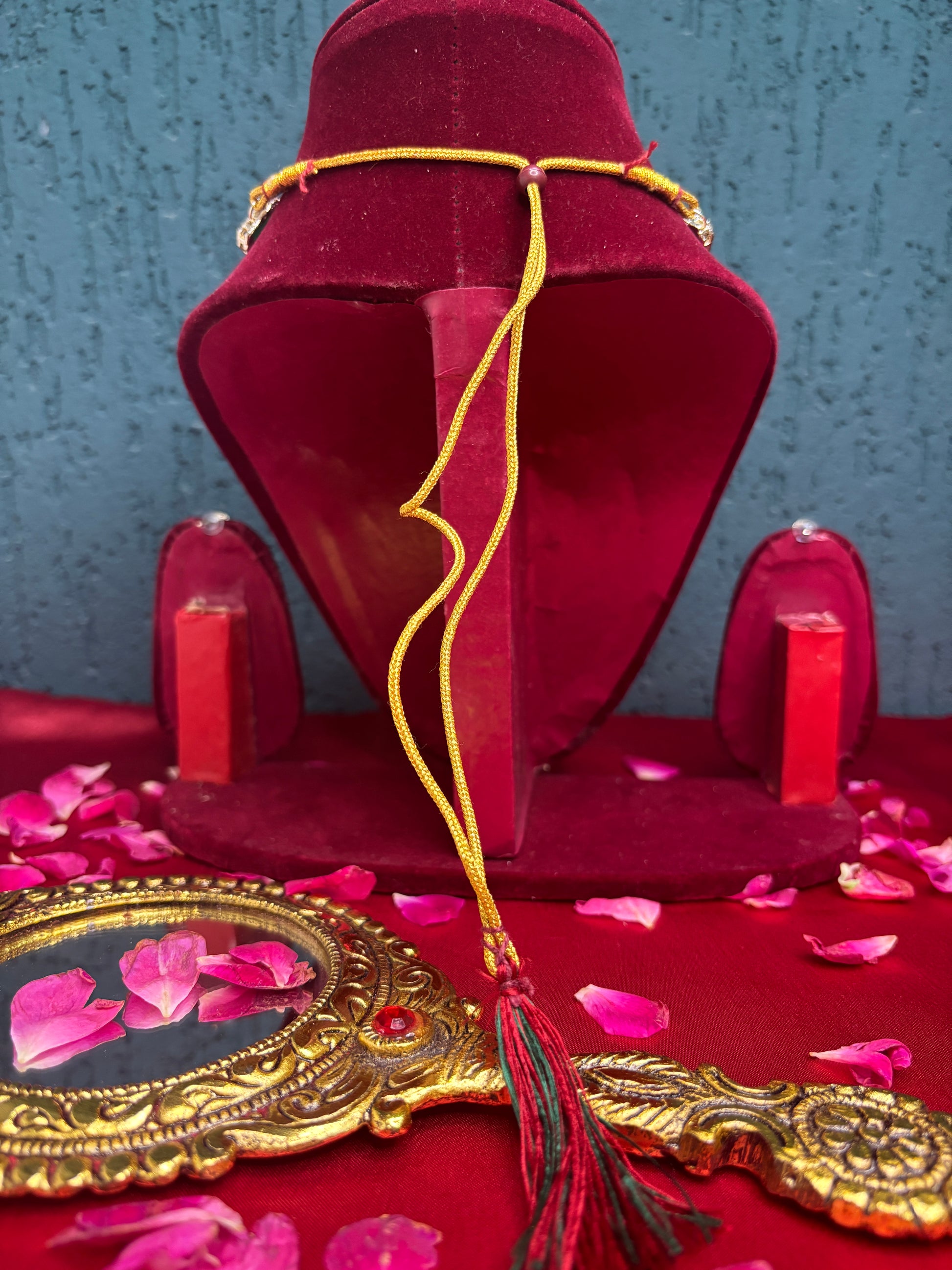 Make a bold statement with this blue square stone necklace set. Complete with matching earrings, this set is perfect for weddings, festive wear, and special occasions. The vibrant blue stones create a striking look for both traditional and party outfits.