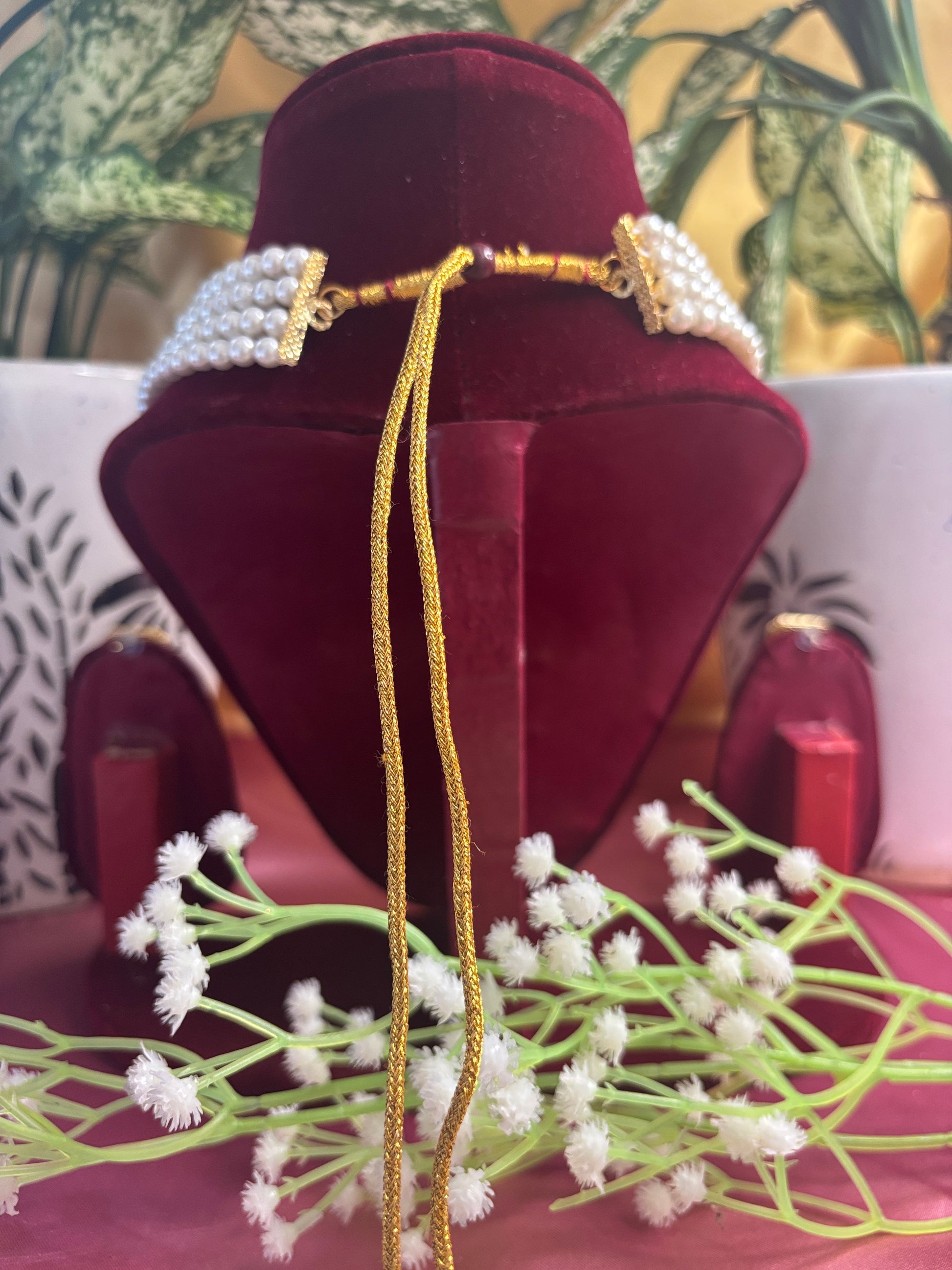 This elegant red and green stone Kundan necklace set with pearls is a beautiful choice for weddings, receptions, and cultural events. The combination of vibrant stones with a pearl base adds richness, while the earrings complete the festive look.