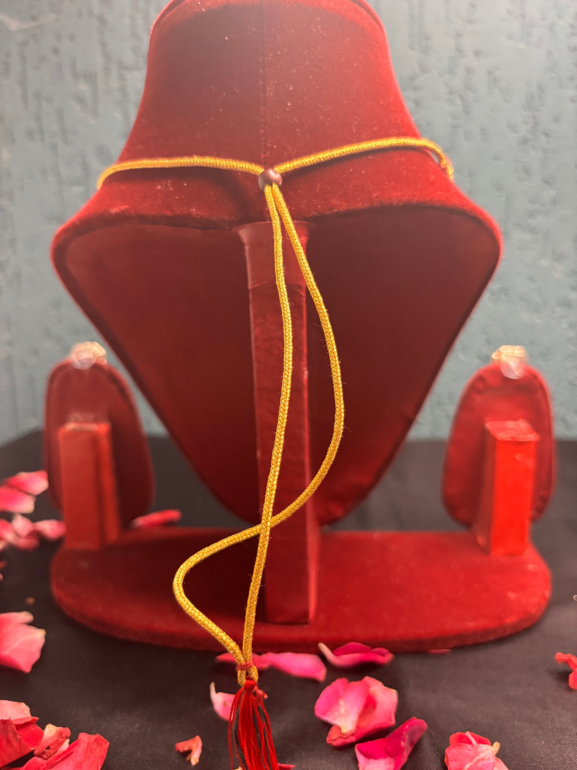 Add timeless charm to your ethnic look with this red necklace set featuring sparkling red stones and delicate white accents. Designed with a lightweight yet durable finish, this necklace comes with matching earrings, making it perfect for weddings, parties, and festive occasions.